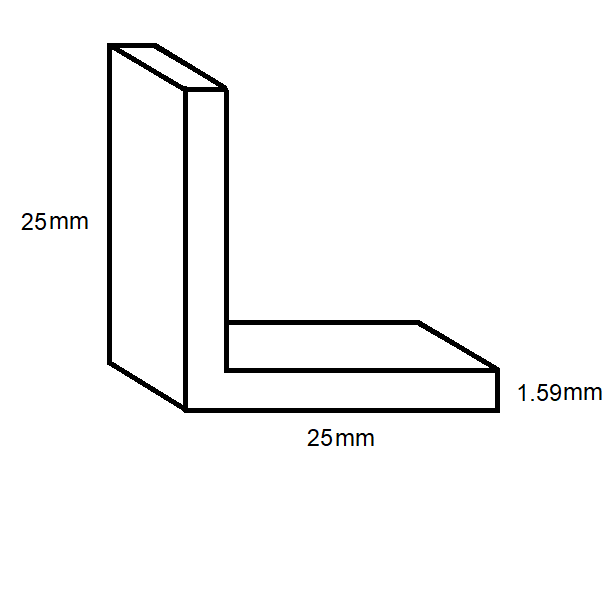 Aluminium Equal Angle- 25mm x 25mm x 1.59mm- Length 3150mm