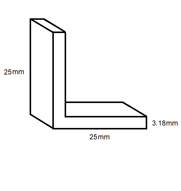 Aluminium Equal Angle- 25mm x 25mm x 3.18mm- Length 4000mm