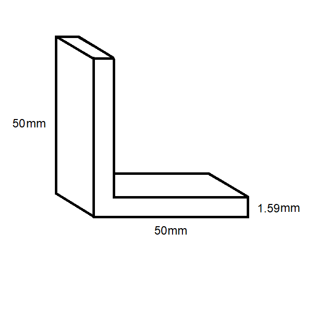 Aluminium Equal Angle- 50mm x 50mm x 1.59mm- Length 5000mm