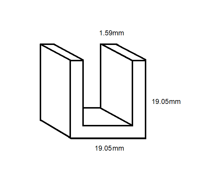U Channel (15.85mm internal)- 19.05mm x 19.05mm x 1.6mm - 4000mm